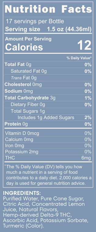 Everyone’s tolerance is different, but if you're new to THC, we recommend starting with one shot (1.5 oz) of our low dose and seeing how you feel after 15-30 mins. Need more? Sip slowly and build the buzz that works for you. 🌟